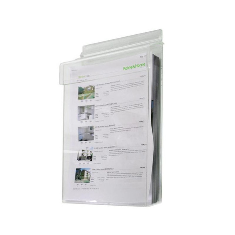 The see-through plastic allows the whole front of the brochure to be seen. A scoop-front holds your pages in, while giving a clear view of much of the literature. They are great for use with small catalogs, pamphlets, seasonal deal highlights, new gifts, new services, facility enhancement notifications, and more.