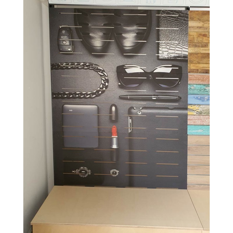 Dashwall is a great alternative to slatwall for organizing your display. It works very similar to slatwall, with most the hooks and brackets fitting as they do in slatwall. It's just a little different look.