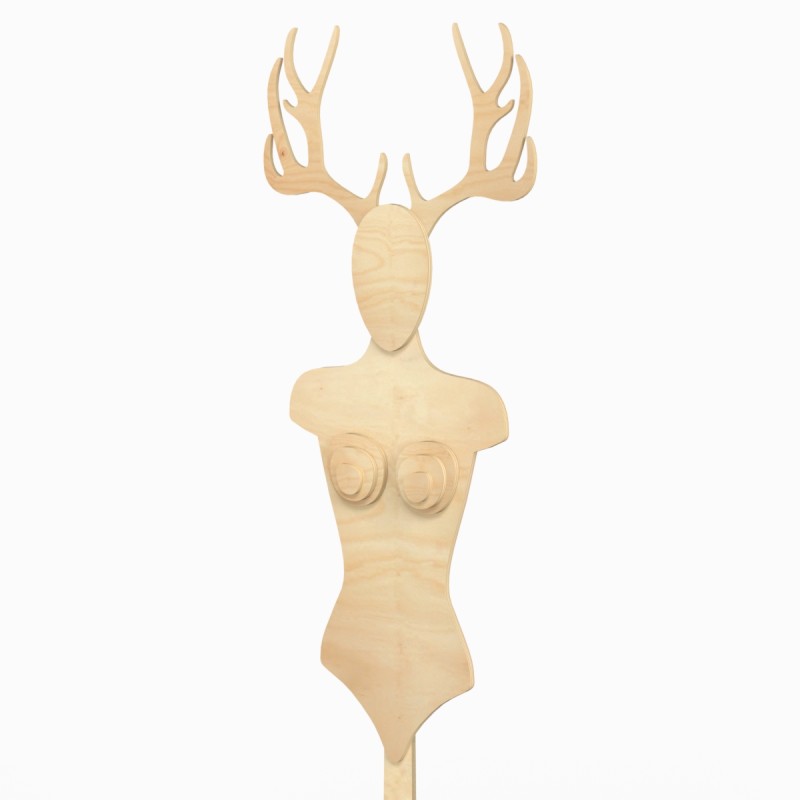 Wooden Female Body Form on Stand Deer Head no arms