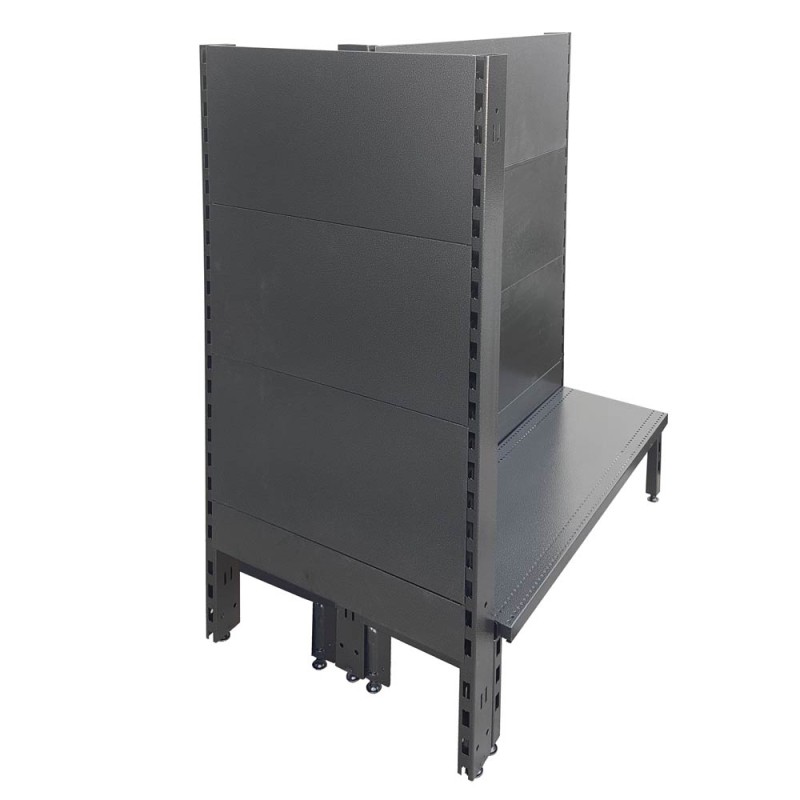 Gondola Height - The distance between the floor and the top of the gondola. Screw type leveler feet allow up to 5cm of adjustment to gondola height on uneven floors.