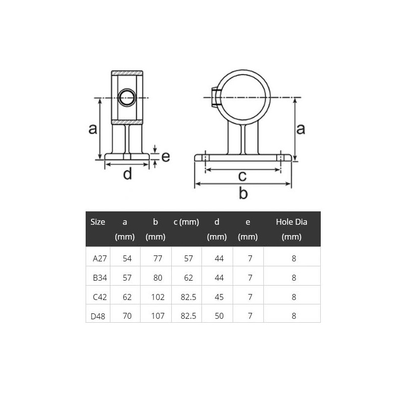 Four different size ranges of industrial handrail fittings are available as shown in the table, hence a suitable size can be selected for any particular application.