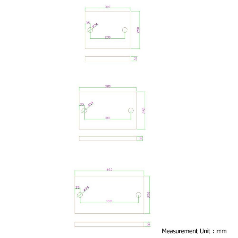 Shelf size: 30x25cm / 38x25cm / 46x25cm.