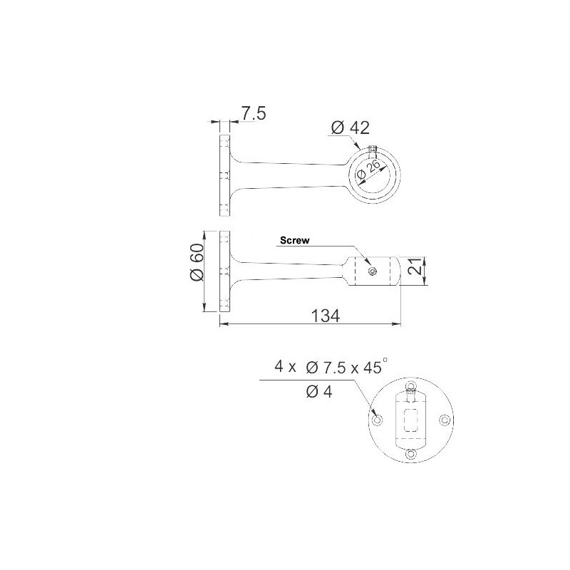 Hanging Rail Center Bracket 25mm Chrome