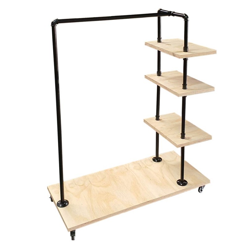 Industrial look Mario Single Clothing Rack with Plywood shelves