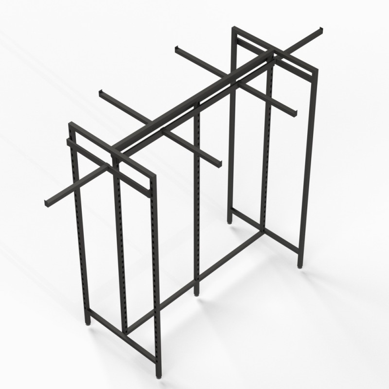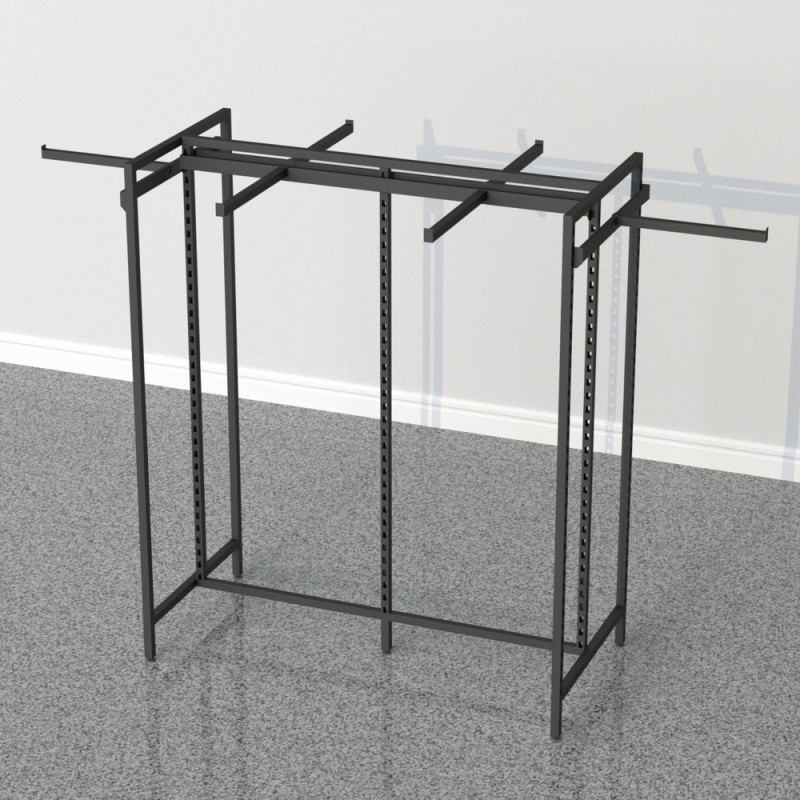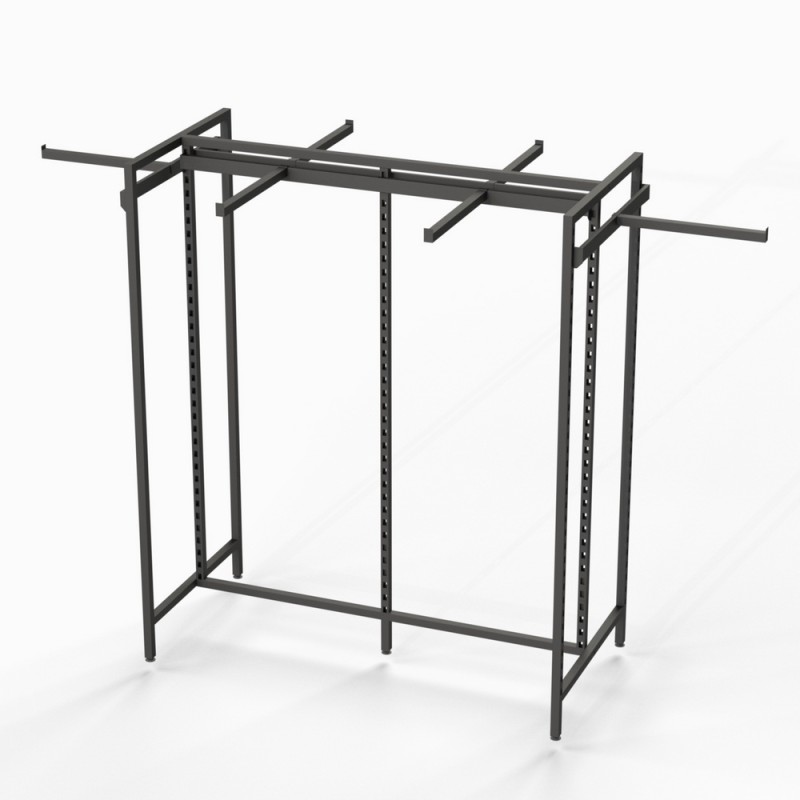 With 600mm side widths on the ends and 1200mm centre, you get flexible space for shelving and hanging displays.
