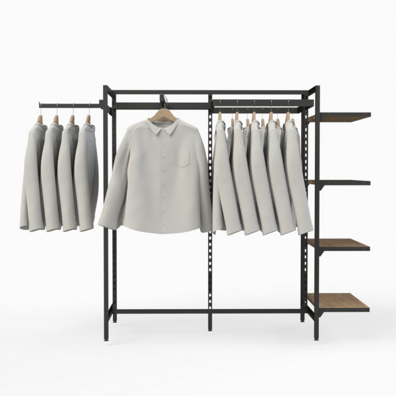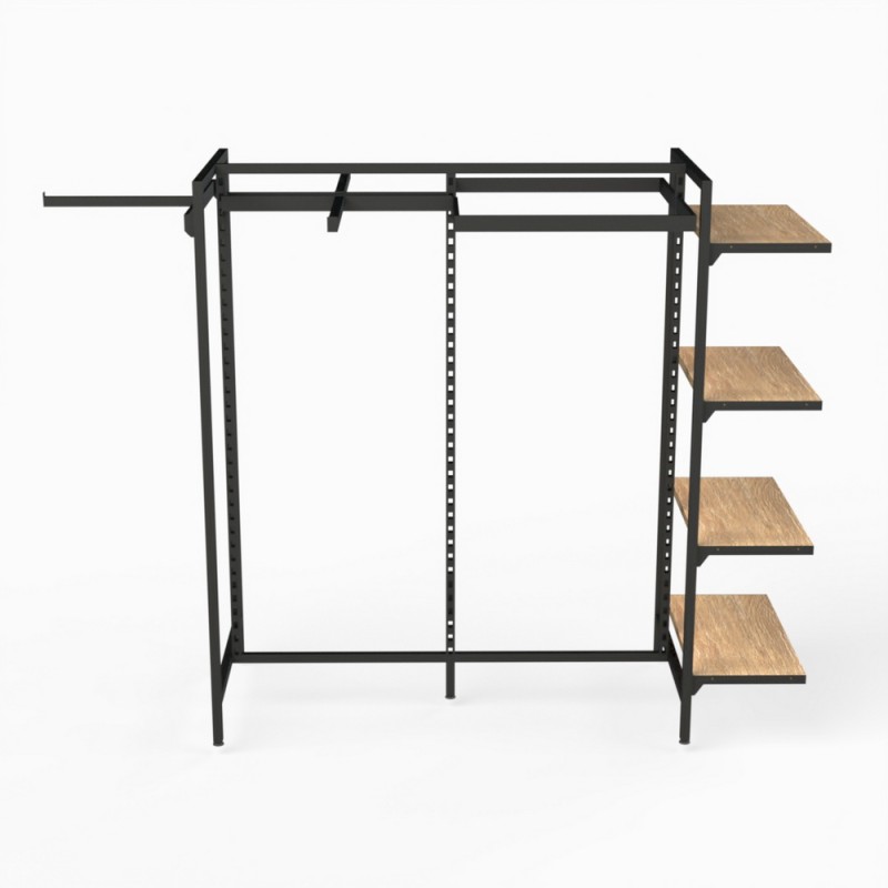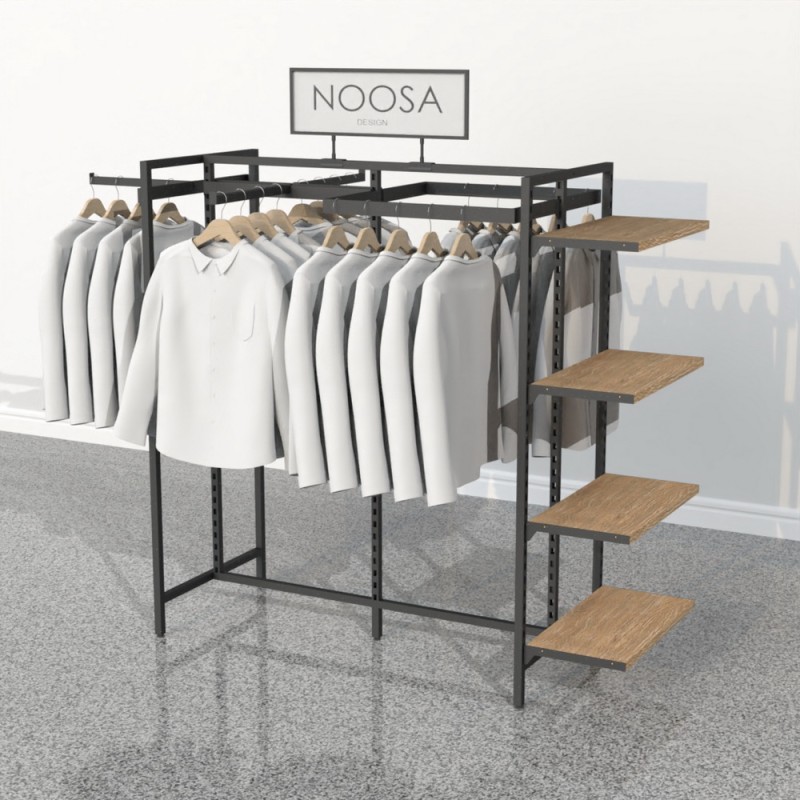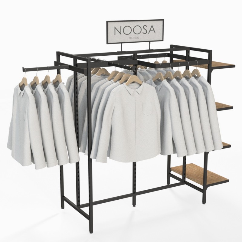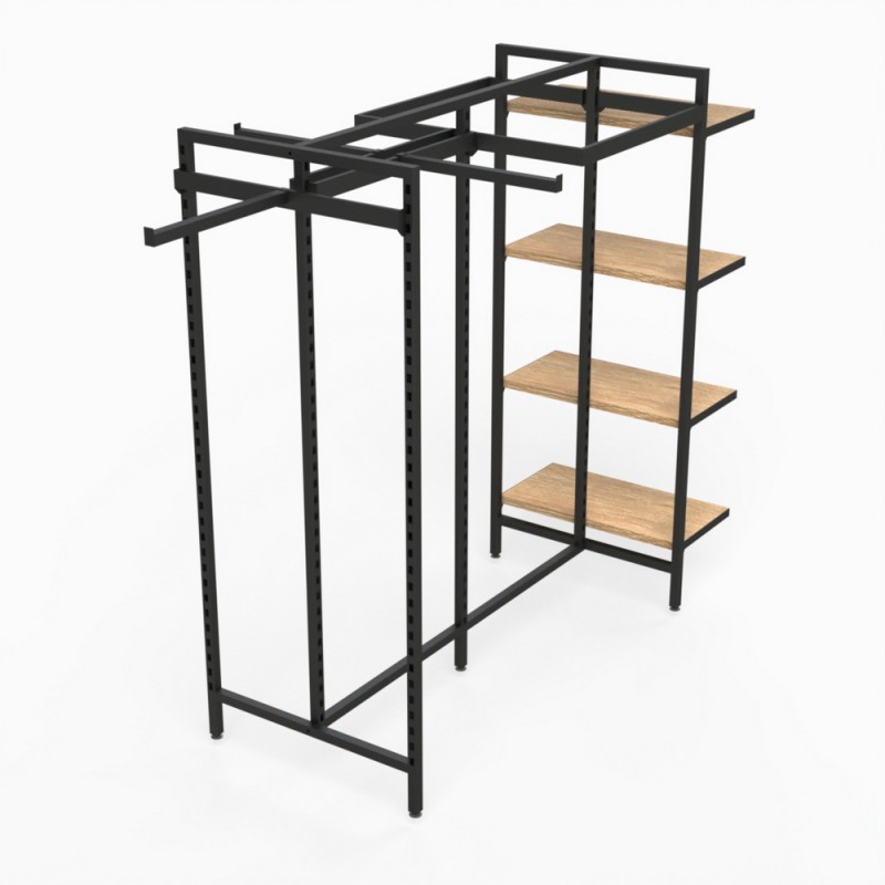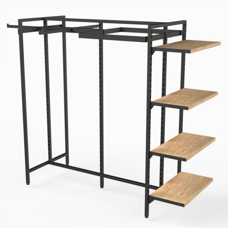 This display stand comes with four timber shelves 600x300mm for displaying folded clothes or accessories.