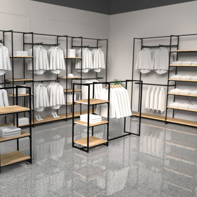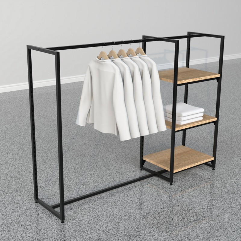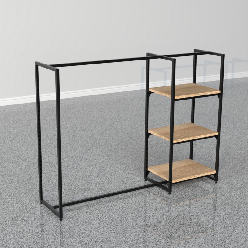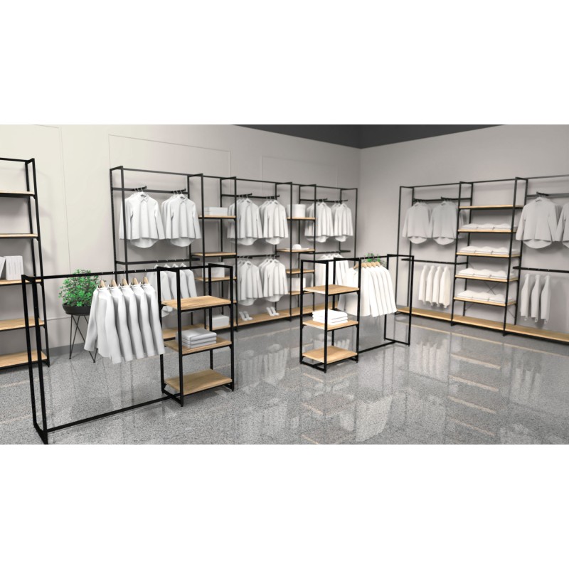 The modular display is available in a multitude of options beginning at a standard height of 137cm but can be extended up to 375cm if required. Available with 25mm thick timber shelving. This along with the various options available can be combined with crossbars and hang rails in various sizes to provide that unique but timeless and high-end impression that can only come from such a sophisticated design.
