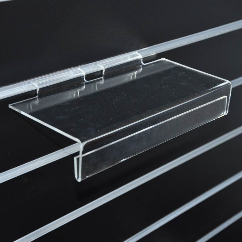 Economical Flat Plastic Shoe Shelf for Slat Panel with Sign Holder