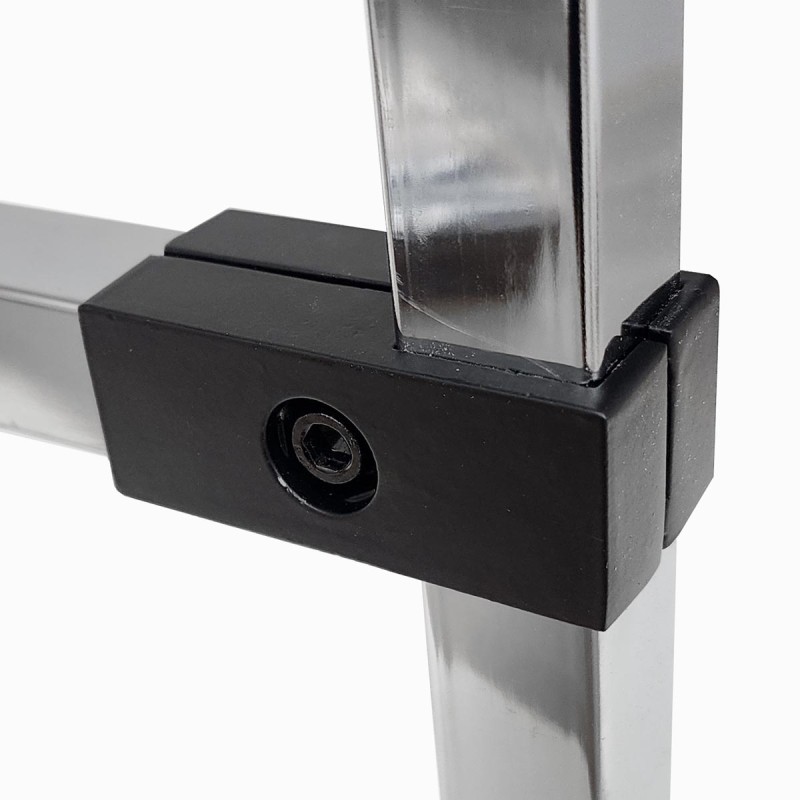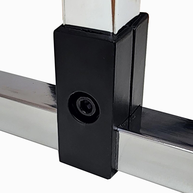 This square tube 2 way connector is designed for securely mounting 1-inch square tubing at right angle. It’s ideal for shelving, cabinets, and a wide range of square‑tube construction projects.