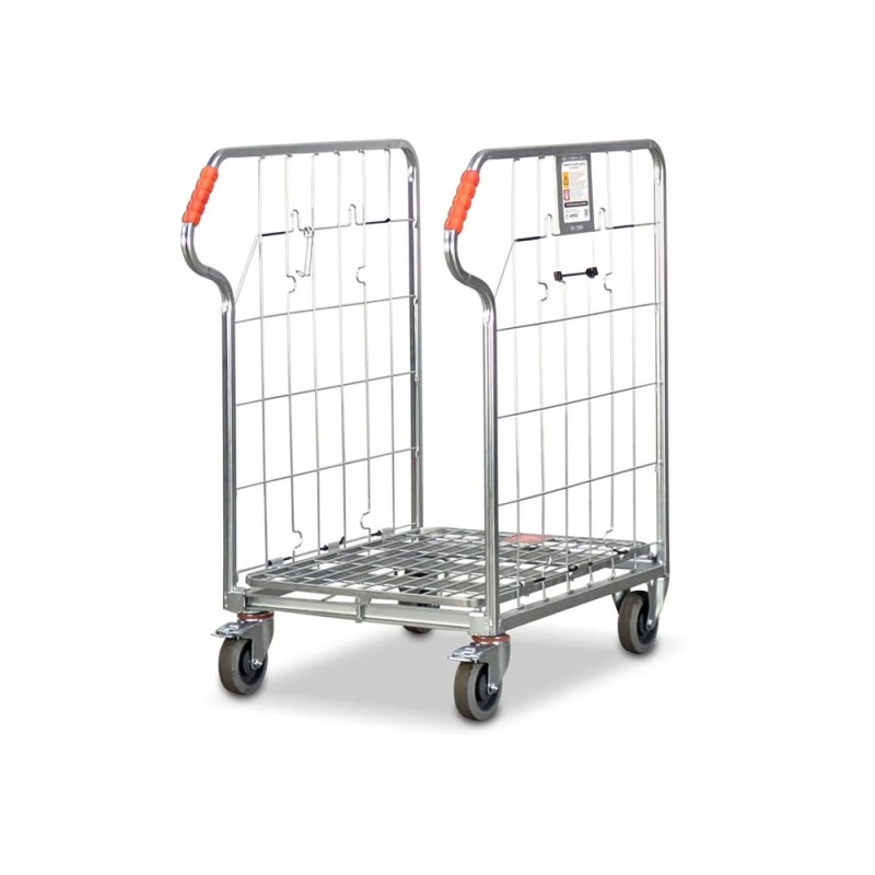 Compact folding roll cage trolley. 2-sided with base shelf