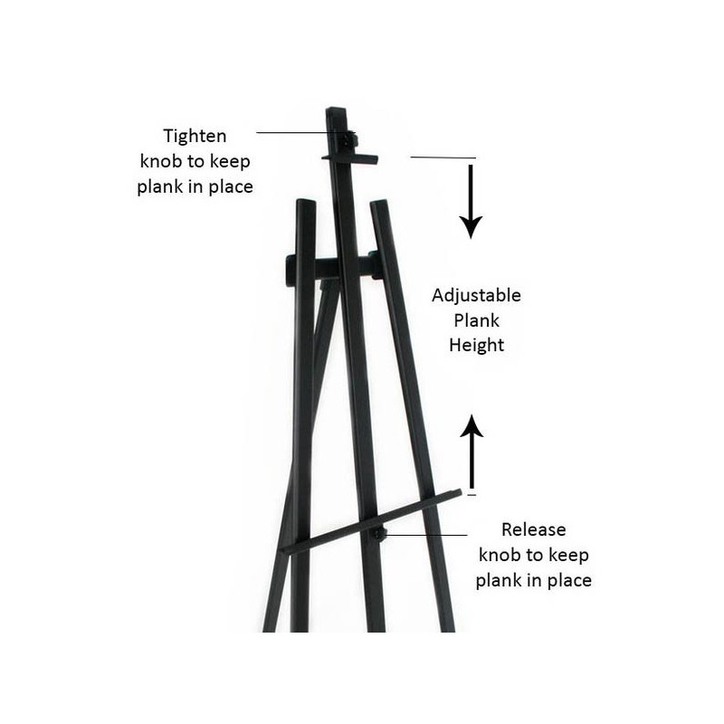Our easels are ideal to hold Picture frames, Snap Frames, Canvases, Light Boxes, Poster Frames, and many more advertising in retail stores as well as general signage and can be used in a variety of indoor locations for a smart, professional look for your businesses signage. Sign Frame need to be placed on the horizontal plank and held into place by adjusting the knobs. The height of our easels can be easily adjusted by using the knobs and moving the plank to the desired position.