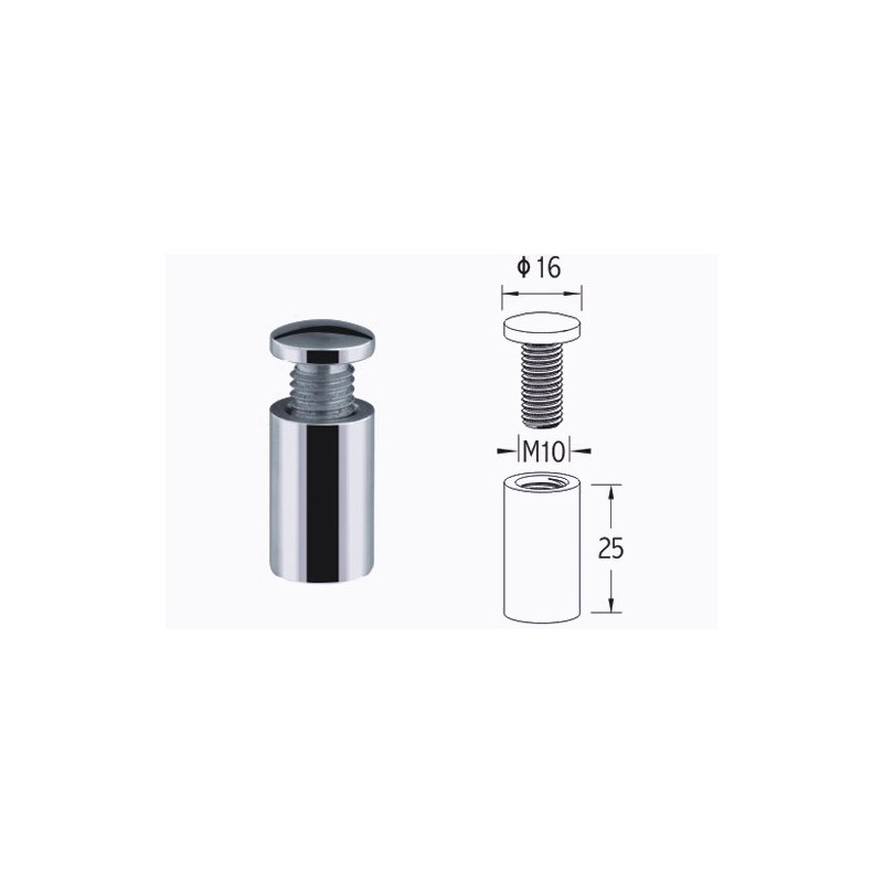 Standoff Dome Top 16mm x 25mm Satin Silver