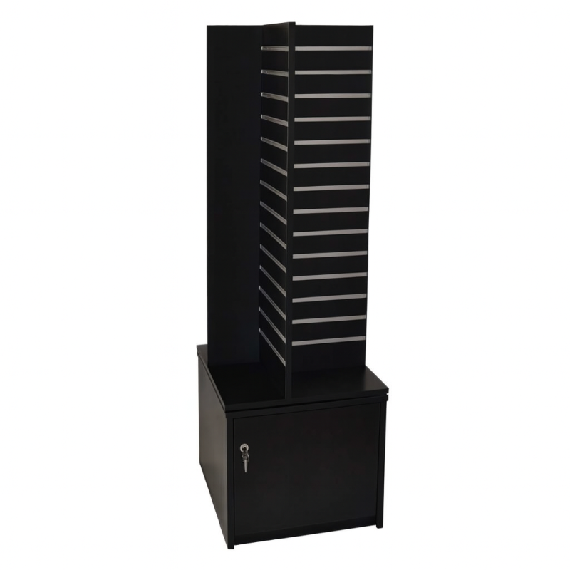 The Small Spining 4-way star Freestanding Slatwall gondola is perfect for shelving and product merchandising on hooks and other accessories