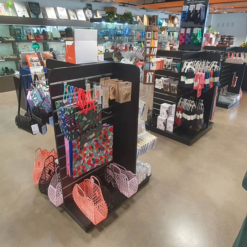 On castors for easy in-store maneuvering (2 lockable)