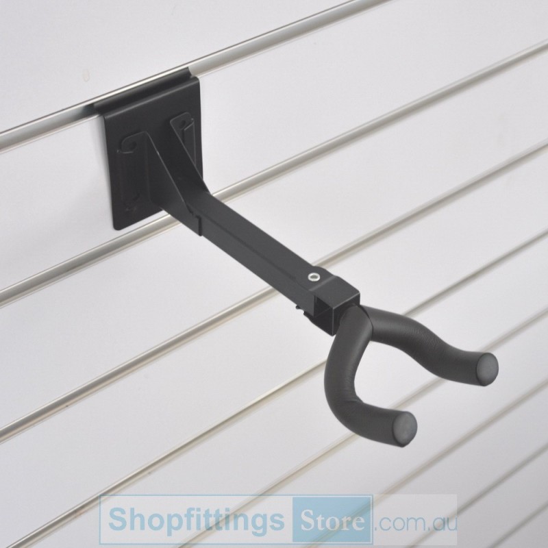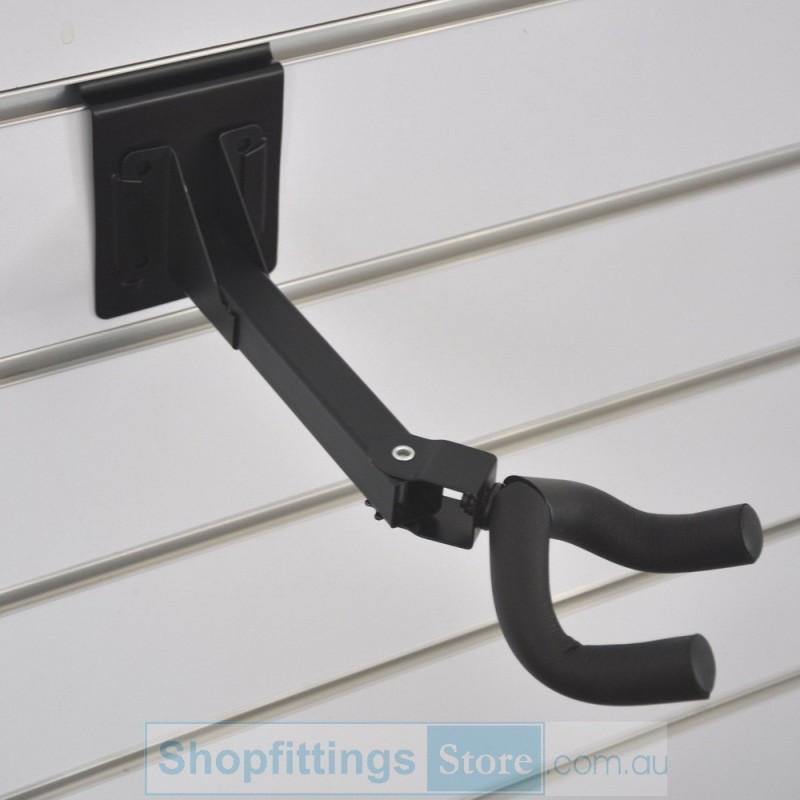 This guitar bracket can be used with any slatwall or slatgrid, or use screws to attach directly to an appropriate wall.