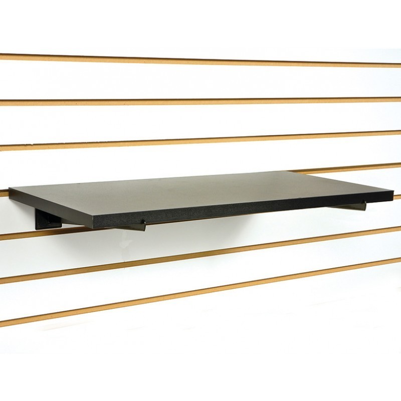 Melamine wood shelves are sturdy and good looking! Use the as slat-wall shelves with slat-wall shelf brackets. Made of 18mm particle board. Our melamine wood shelves are available in black, white and maple.