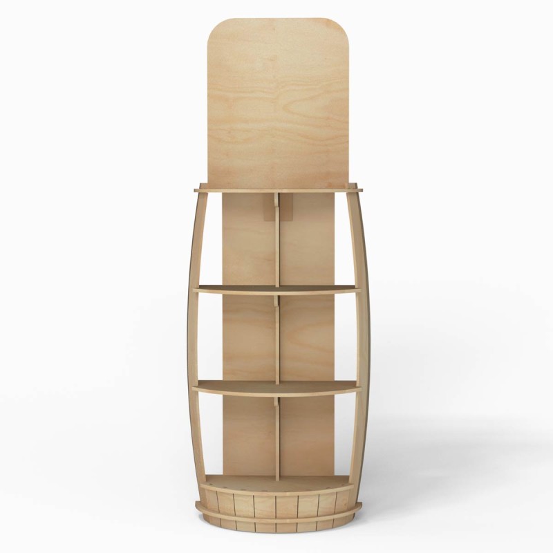 When you really want to make a statement, and display your product in an innovative fashion, consider this brilliant timber berrel display. Drawing inspiration from village markets, this great stylish stand is hard to ignore.